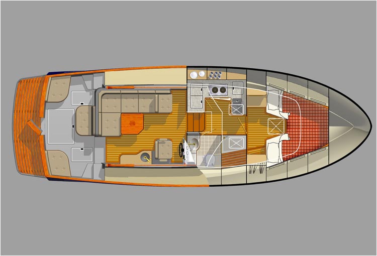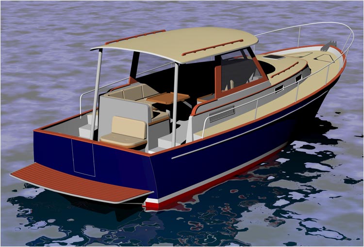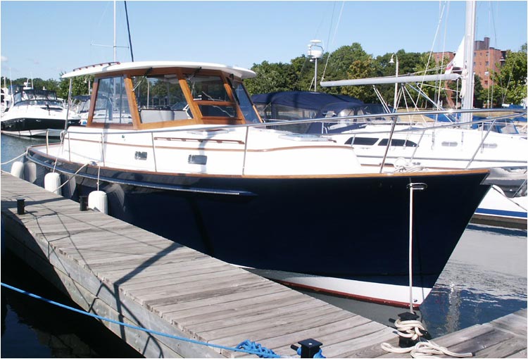 Mark Bruckmann and Mark Ellis have a long history of producing handsome and innovative yachts, power and sail, that bespeak classic yacht quality and style. The swept sheer, classic trunk cabin and windshield configuration, broad side decks and transom tumblehome are sure to appeal to the experienced eye.